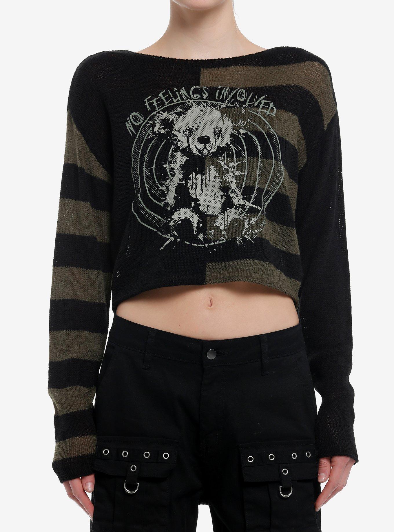 Price: $29.90 | lt div gt grunge up your look but make it cute in this sweater it has a cropped fit and features a split sold black and green and black stripe design. features a beat up teddy bear posing in front of a target with no feelings involved scratched above. lt div gt lt ul gt lt li gt 100 acrylic lt li gt lt li gt wash cold dry flat lt li gt lt li gt stretchy material lt li gt lt li gt length 27 39 39 lt li gt lt li gt imported lt li gt lt li gt listed in junior sizes lt li gt lt li gt model is 5 39 10 39 39 lt li gt lt li gt model wears size small lt li gt lt ul gt 100 acrylic | |