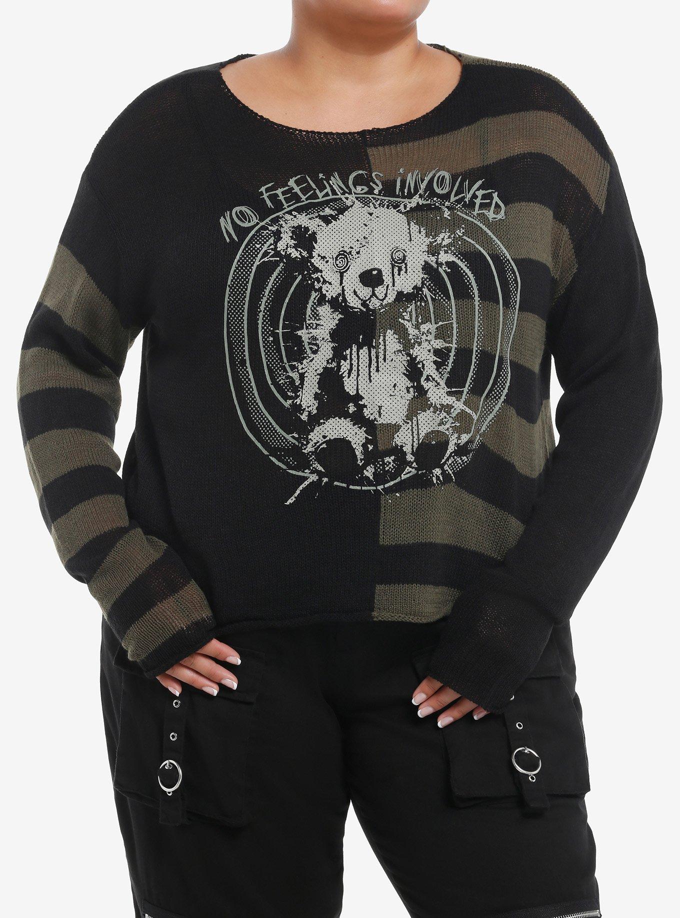 Price: $29.90 | lt div gt grunge up your look but make it cute in this sweater it has a cropped fit and features a split sold black and green and black stripe design. features a beat up teddy bear posing in front of a target with no feelings involved scratched above. lt div gt lt ul gt lt li gt 100 acrylic lt li gt lt li gt wash cold dry flat lt li gt lt li gt stretchy material lt li gt lt li gt imported lt li gt lt li gt model is 5 39 10 39 39 lt li gt lt li gt model wears size 1 lt li gt lt ul gt 100 acrylic | |