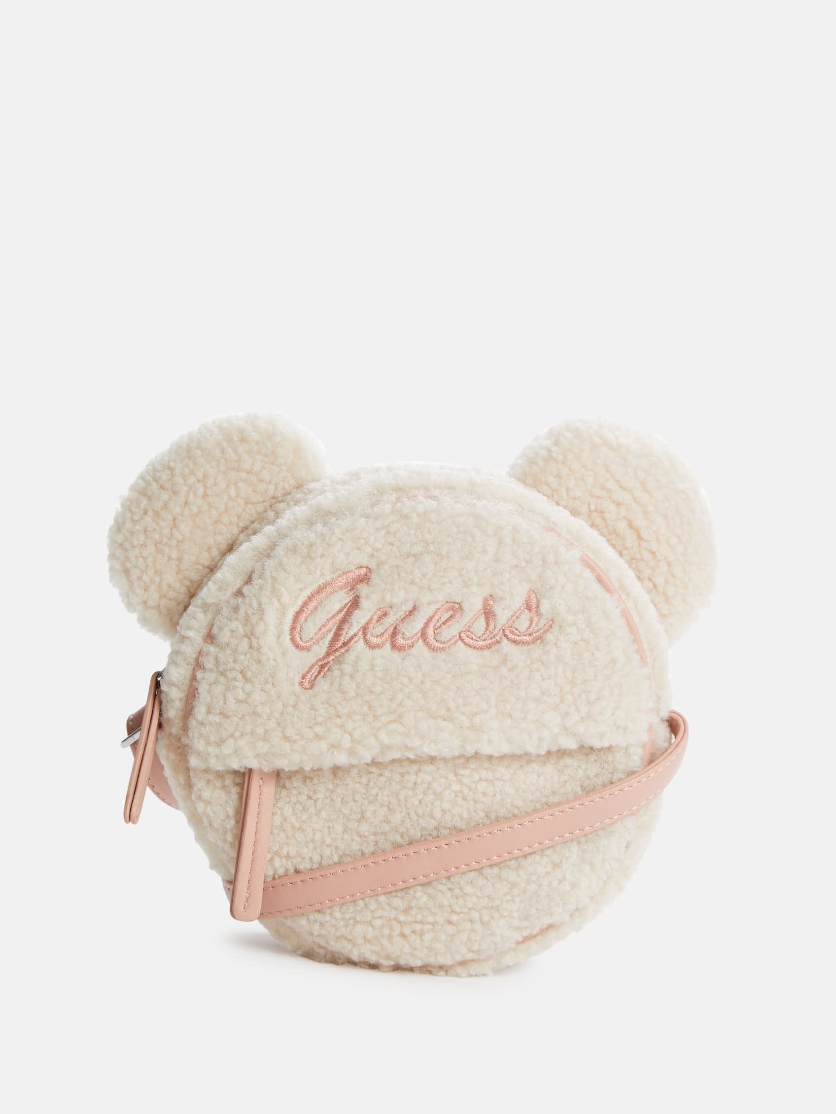 Price: $29.99 | kids sherpa crossbody bag teddy bear ears and embroidered script logo round silhouette front exterior zip pocket adjustable strap lined zip closure 6 w x 6 h x 1.5 d | |