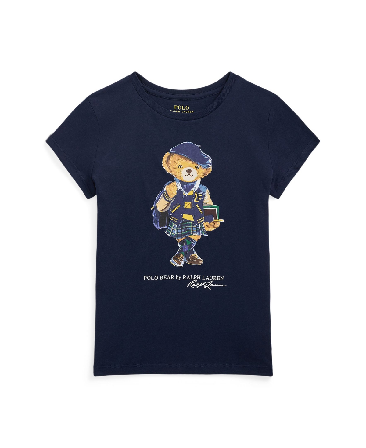 | this cotton jersey tee celebrates back-to-school season with a print of the polo bear dressed in a signature ensemble while on campus. body 100 cotton