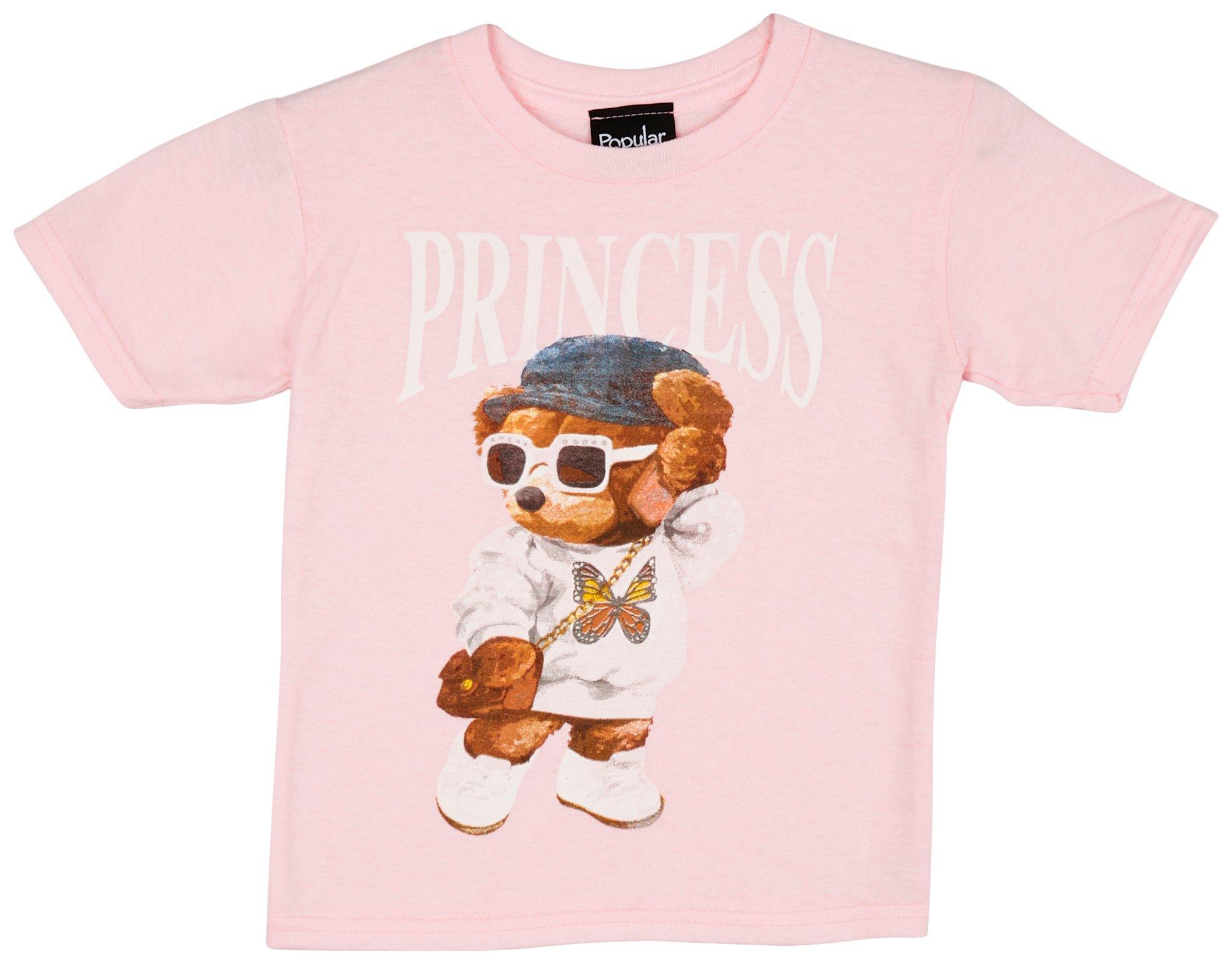Price: $10.00 | This top features a princess bear screen print, short sleeves, and a lightweight comfortable crew neckline. Fabrication is 100% preshrunk cotton. |