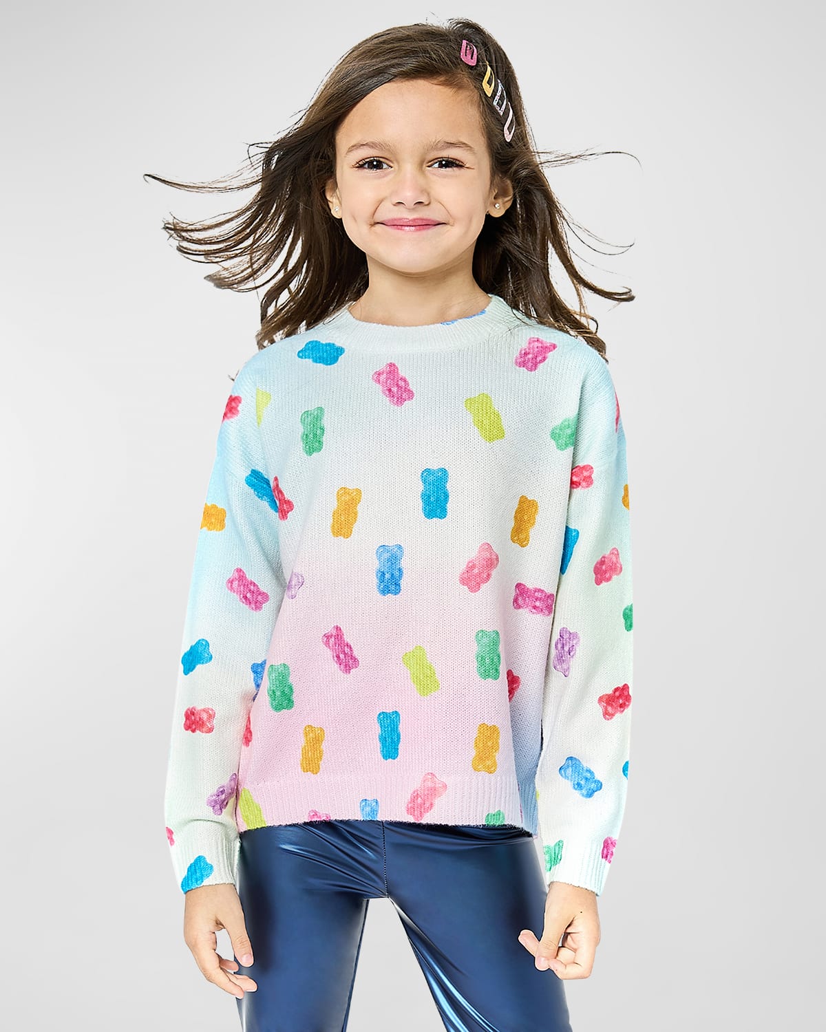 Price: $68.00 | sweater adorned with multicolor gummy bears crew neckline long sleeves ribbed trim pullover style polyester imported | |