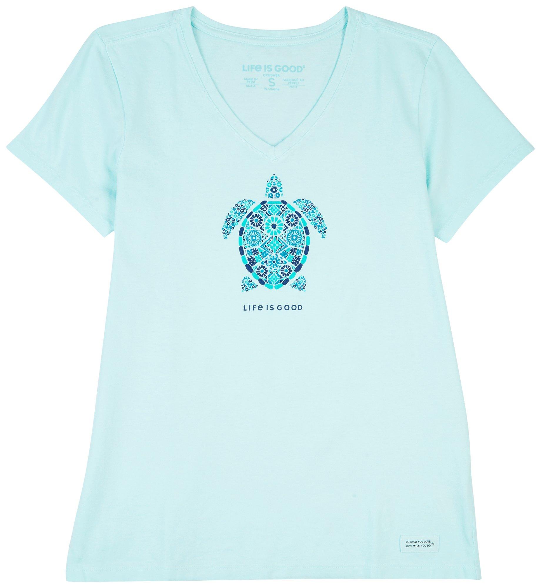 Price: $29.50 | embodies the simple things in life & offers an inspirational message. This crusher tee features a solid color pattern, a front screenprint, v-neckline, and a classic fit. Top length is approximately 26 . |