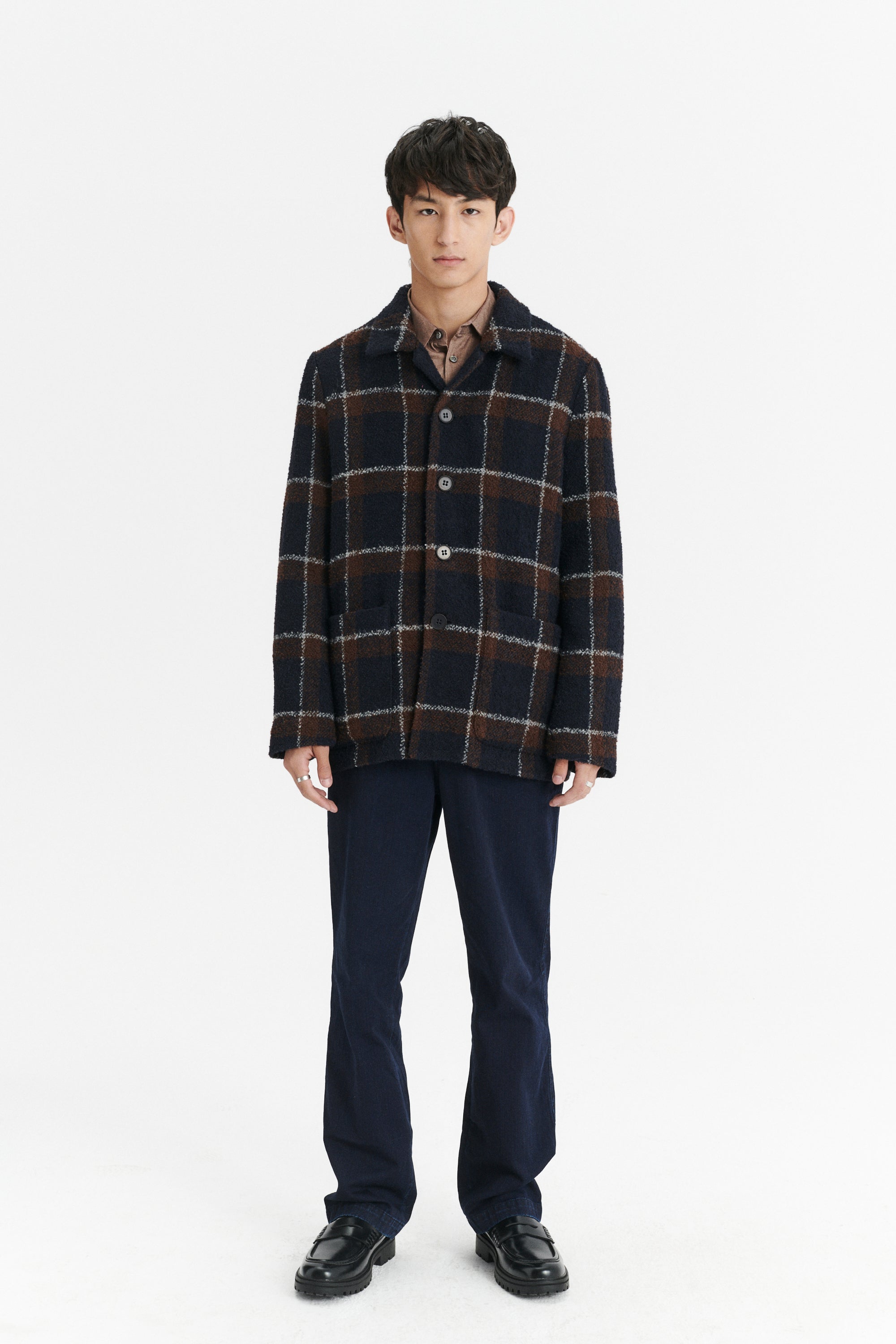 Price: $419.00 | This fine cotton lined jacket is crafted from a soft brown and navy chequered Virgin and Alpaca Wool Mixture with bouclé effect. It is woven by the Family wool weavers Subalpino form Biella, Italy. It works well as an outer layer over a shirt on warm autumn days or over a jumper on cold days. The jacket is fully lined with an inside layer of MEIDA thermo insulation. Meida is a modern high performance padding and windbreaker, designed to enhance the insulation performance of outerwear and sportswear. The insulation padding maintains a total breathability while protecting against wind and water. Shipment 7 working days from your order. Composition [ Wool ] Delivery returns gid://shopify/OnlineStorePage/87298768949 Designers note – Shipping 10 working days from your order – 52% Virgin Wool - 15% Alpaca Wool - 14% PL - 19% PC – Lining, front and back: 100% Cotton – Two pockets – Natural horn buttons – Oversized fit – Model is 61/185cm tall, with a 37,4″/95cm chest and wears size M – Only dry-cleaning Fabric type [ Other ] Model Insulated Jacket Style [ Coats ] Age group adult Condition new Custom product false Gender male Size guide gid://shopify/OnlineStorePage/122470990154 |