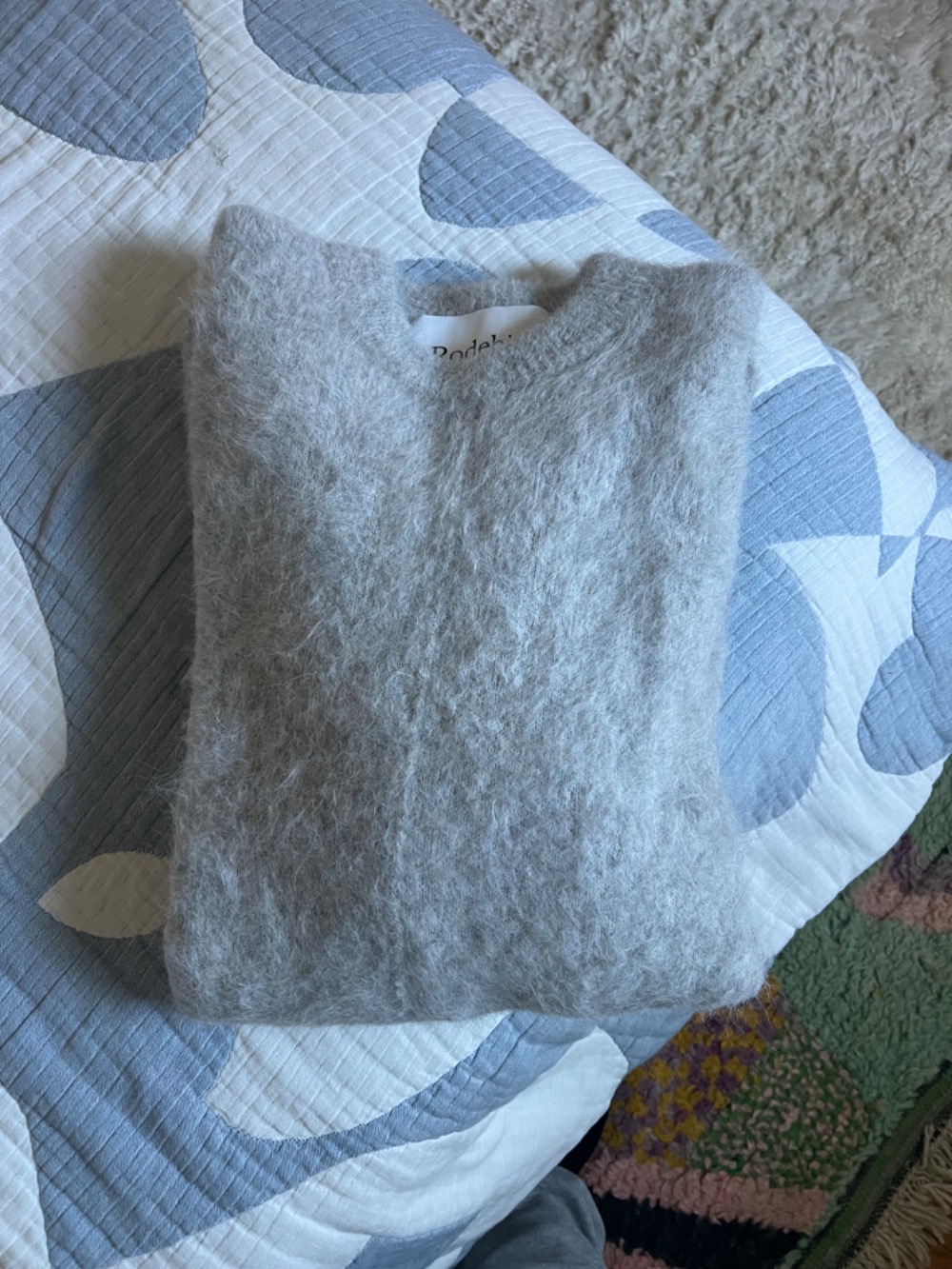 Price: $100.00 | Crew-neck alpaca-wool jumper from featuring light grey, alpaca wool-blend, exposed-seam detailing, crew neck, long sleeves, straight hem and long length. Tag detached but never worn! Super cozy and comfy but I never wear it so I figure someone else would be better off with it. | |