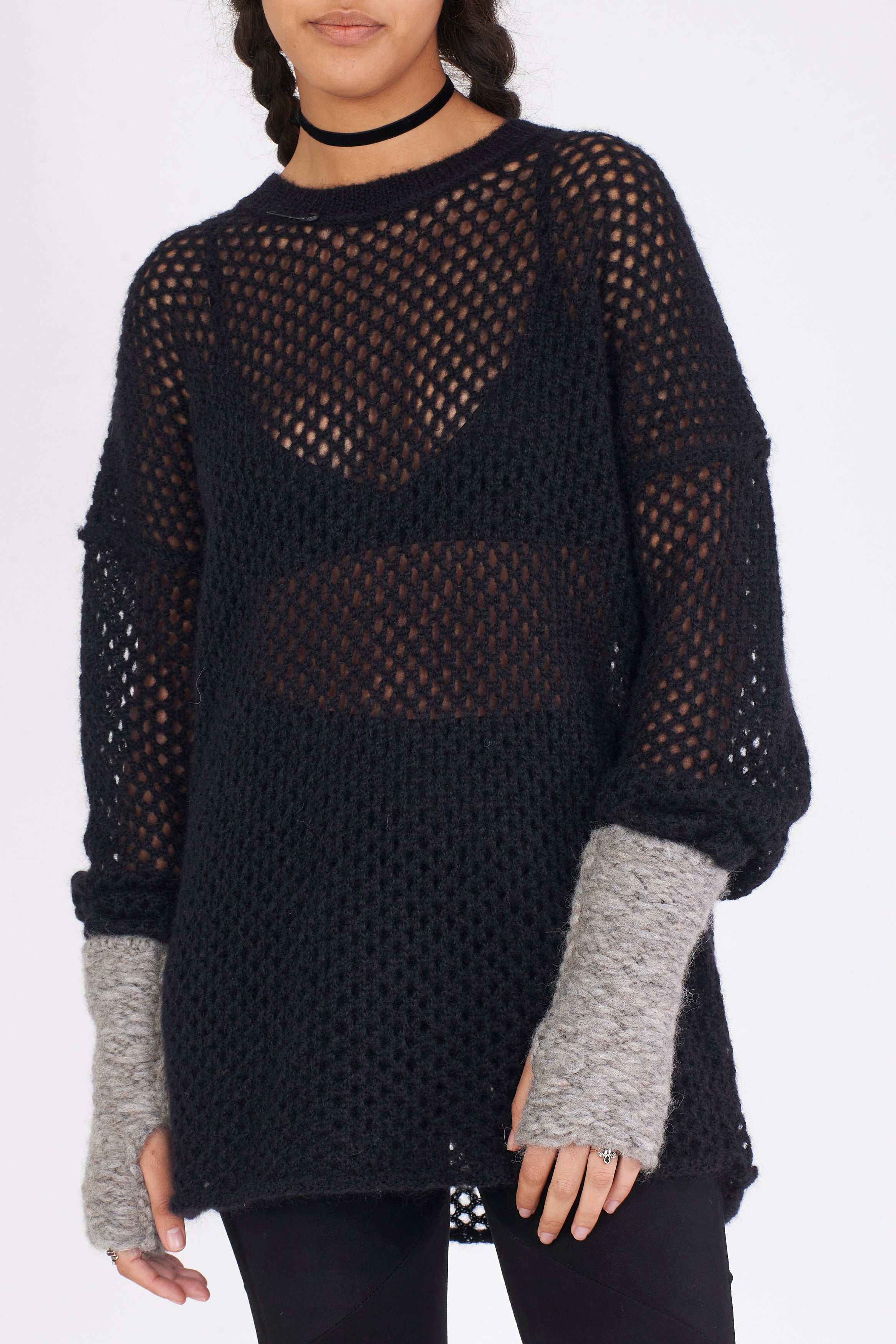Price: $142.00 | knitted, laminated effect, mélange, no appliqués, solid color, round collar, lightweight sweater, long sleeves, no pockets, small sized , Color: Grey , Size: 10 | |