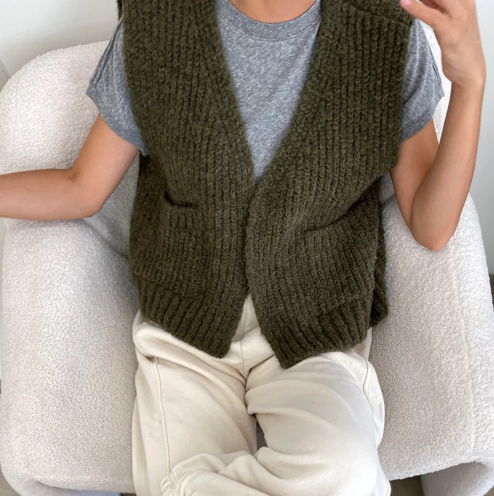 Price: $164.00 | Made with luxurious and snuggly alpaca, You will never wear any other vest after wearing this one! Its heavy classic, easy fit can be dressed up or worn casually as an everyday favourite, featuring two front pockets for added convenience. Contents: - 65% Alpaca, 22% Acrylic, 11% Nylon, 2% Polyurethane - Made in South Korea Care Instructions: - Dry clean only Approximate Measurements: XS/S - Length: 19 , Chest: 20 M/L - Length: 19 1/2 , Chest: 21 Model is 5 5 , 110lbs and wearing a size XS/S |