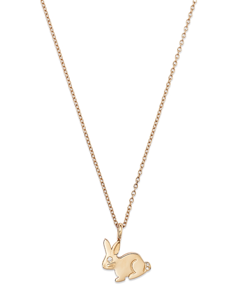 | 14K Yellow Gold Diamond Bunny Pendant Necklace, 16-18