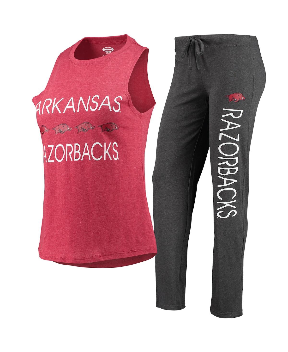 Women Charcoal, Cardinal Arkansas Razorbacks Tank Top And Pants Sleep Set | ||