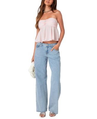Price: $42.00 | Women Starfish Strapless Top.Color:Light Pink Material:50% Cotton 50% Polyester.Tops. |