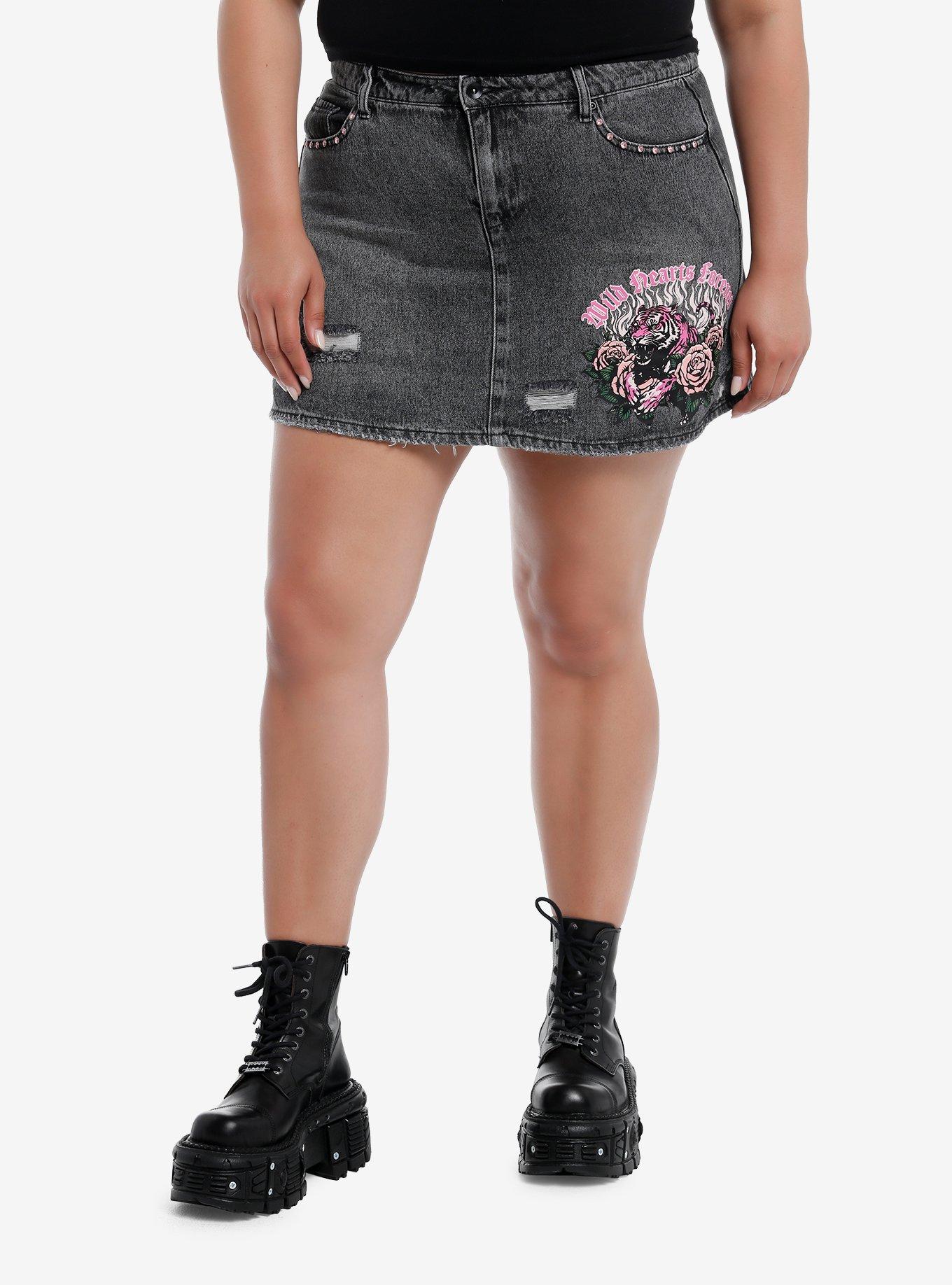 Junior Sweet Society Tiger Denim Mini Skirt Plus Size