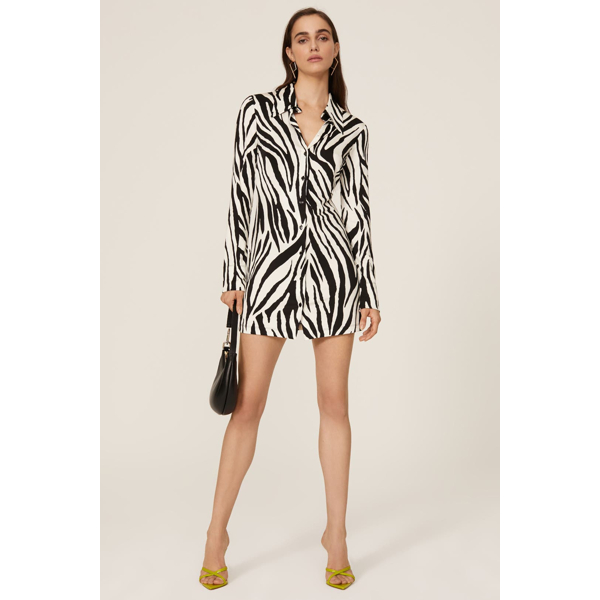 | Black and white jersey (94% Polyester, 6% Elastane). Sheath. Collared neckline. Long sleeves. Front button closure. 32 from shoulder to hemline. Imported.