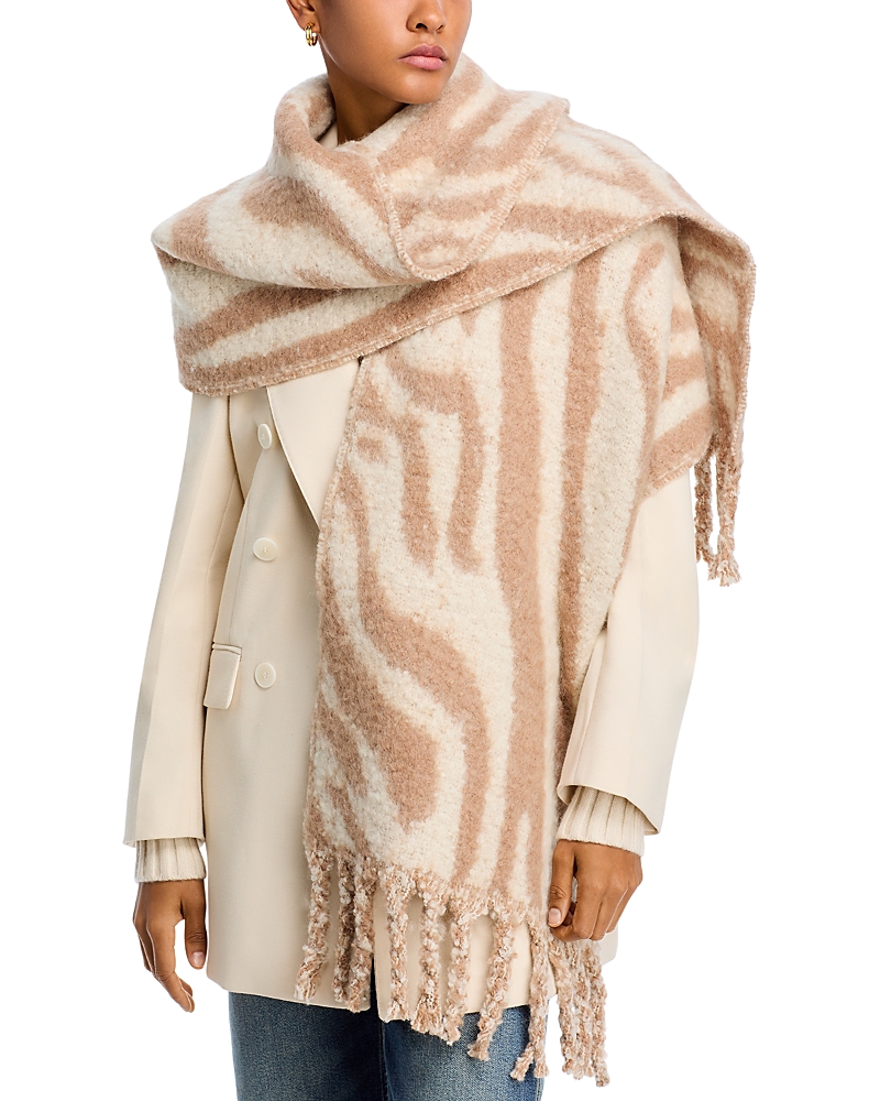 | Zebra Boucle Scarf.Color:Tan.Material:65% acrylic/22% wool/15% nylon/2% polyurethane.Scarves & Wraps.